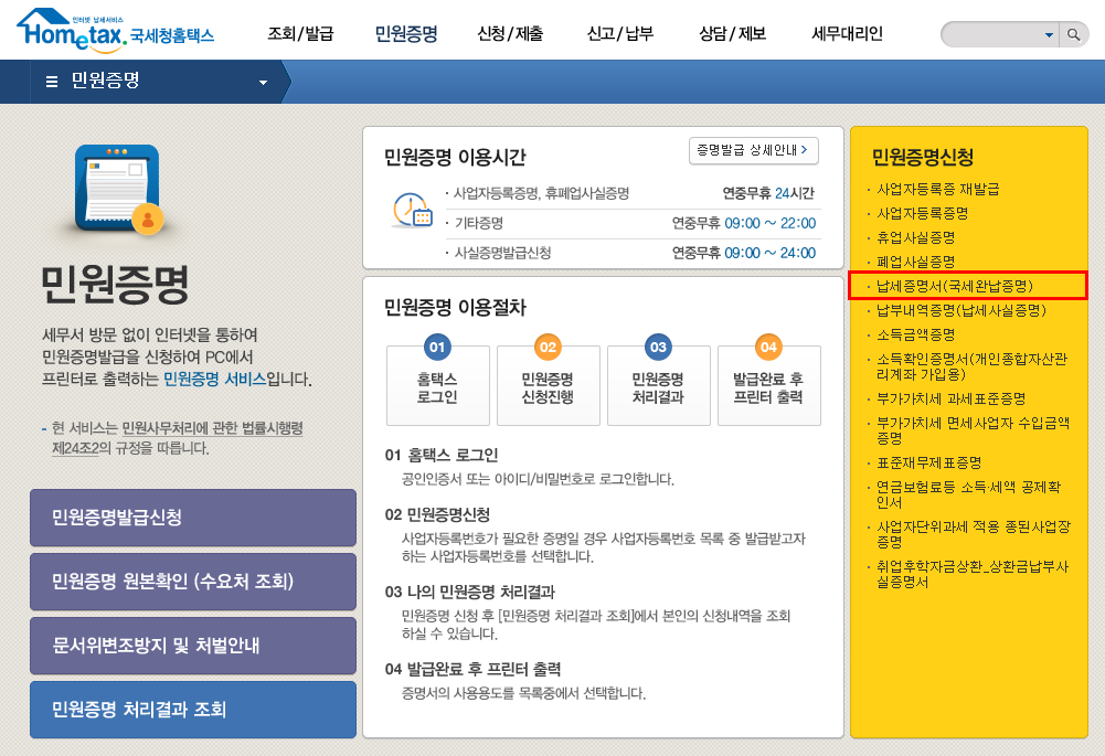 국세완납증명서 인터넷 발급 단계별 가이드
