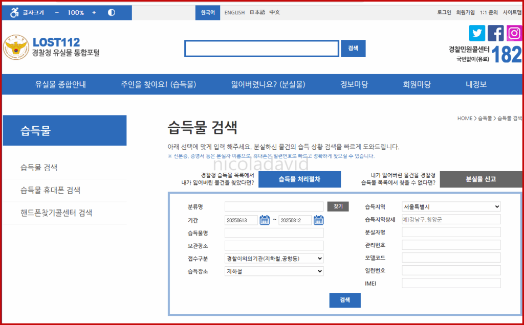 온라인으로 습득물 검색하는 구체적 절차