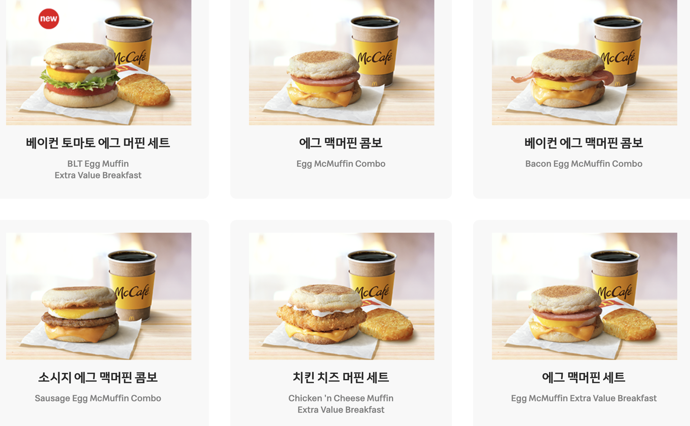 - 베이컨 에그 맥머핀 세트: 5,700원