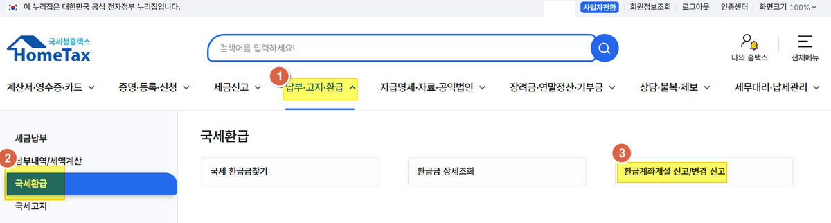 - 환급계좌 정보가 잘못 등록되었거나 변경된 경우